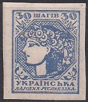 Украинская Народная Республика (УНР) 1919 год. Марка (номинал 30 шагов)