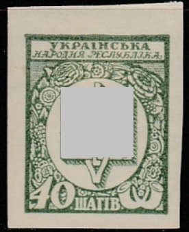 УНР. Восточная Украина. Центральная Рада 1918 год. Трезубец, ном. 40 ш., 1 б/зубц. марка (наклейка)