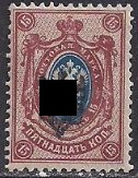 УНР. Восточная Украина 1919-1920 год. НДП черный трезубец малый на марке России (15 коп.), 1 марка. НДП может находится в любой части марки !!!