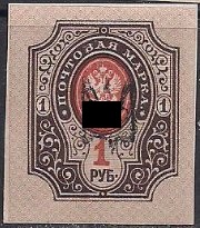 УНР. Восточная Украина 1919-1920 год. НДП черный трезубец на марке России (1 руб.), 1 марка без зубцов. НДП может находится в любой части марки !!!