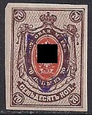 УНР. Восточная Украина 1919-1920 год. НДП синий трезубец на марке России (70 коп.), 1 марка без зубцов. НДП может находится в любой части марки !!!