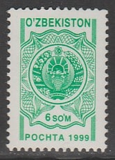 Узбекистан 1999 год. Стандарт. Государственный герб, 1 марка.