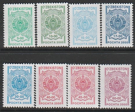 Узбекистан 2000 год. Стандарт. Государственный герб, 8 марок. (5,5)