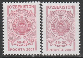 Узбекистан 2001 год. Стандарт. Государственный герб, 2 марки.