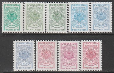 Узбекистан 2001 год. Стандарт. Государственный герб, 9 марок. (8,5)