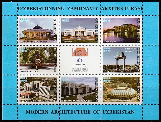 Узбекистан 2003 год. Ежегодное заседание ЕБРР в Ташкенте. Архитектура, малый лист.