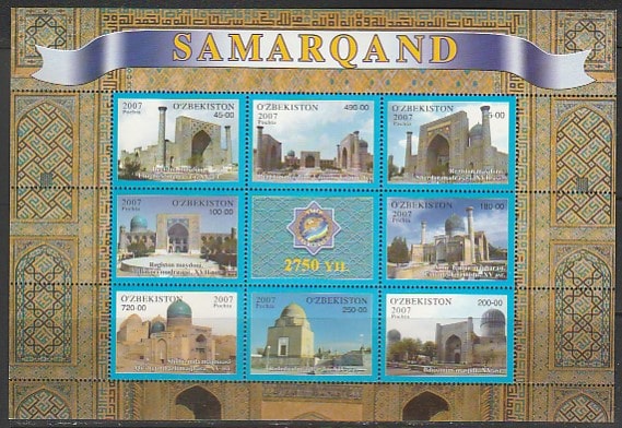 Узбекистан 2007 год. 2750 лет Самарканду, малый лист (I) (7,2)