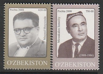 Узбекистан 2008 год. 100 лет со дня рождения писателей: Максуда Шейзаде и Мирзакалона Исмаили, 2 марки.