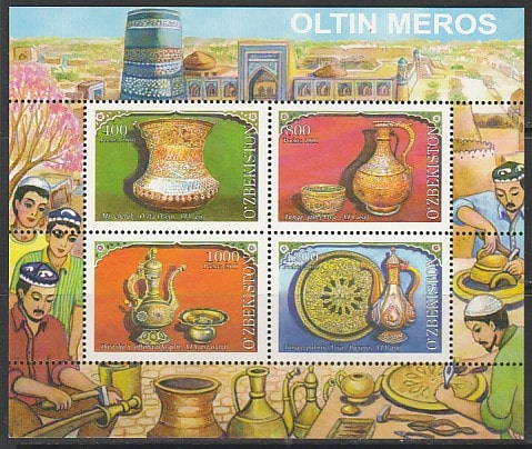 Узбекистан 2010 год. Сосуды с эмалью XIX века, блок. (11)
