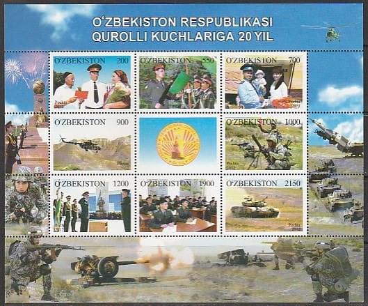 Узбекистан 2012 год. 20 лет Вооружённым Силам, малый лист.