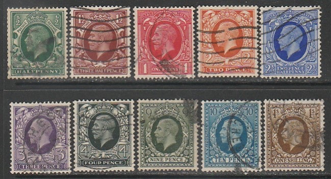 Великобритания 1934 год. Стандарт. Король Георг V, 10 марок из серии (гашёные)