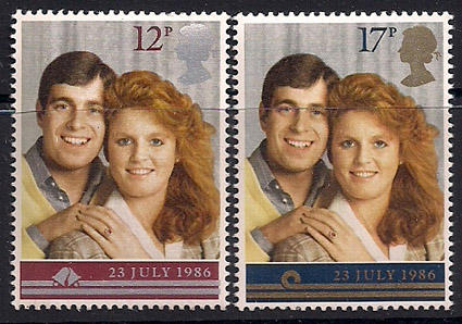 Великобритания 1986 год. Свадьба принца Эндрю и Сары Фергюсон. 2 марки.
