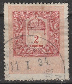 Венгрия 1903 год. Корона Святого Стефана, ном. 2Kr, 1 гербовая марка (гашёная)