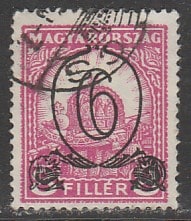 Венгрия 1931 год. Стандарт. Корона Святого Стефана. НДП нового номинала, 6/8 f, 1 марка из серии (гашёная) (5,5/4)