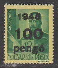 Венгрия 1945 год. Стандарт. Военачальник Артур Гёргеи, НДП, 100 f/12 f, 1 марка из серии (наклейка)