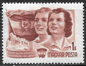 Венгрия 1955 год. Конгресс молодежи, 1 марка с наклейкой