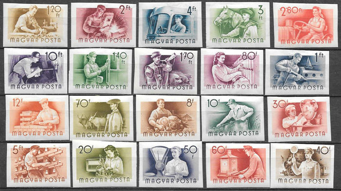 Венгрия 1955 год. Профессии. Стандарт, 20 марок с наклейкой. без/зубцов. Наклейки.