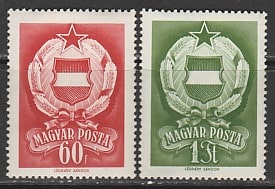 Венгрия 1957 год. Государственный герб, 2 марки (наклейка)