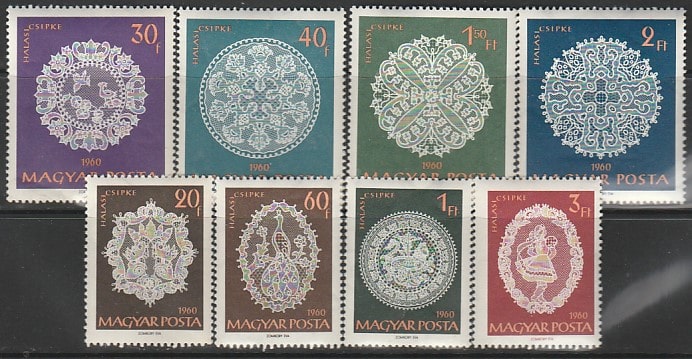 Венгрия 1960 год. Кружева, 8 марок (наклейка)