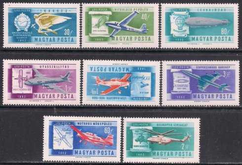 Венгрия 1962 год. Авиация. 8 марок (серия без 1 марки)