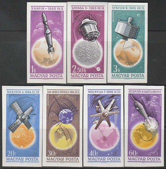Венгрия 1965 год. Достижения в освоении космоса, 7 б/зубц. марок