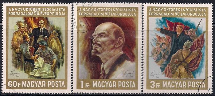 Венгрия 1967 год. Ленин. 50 лет Октябрьской революции. 3 гашеные марки