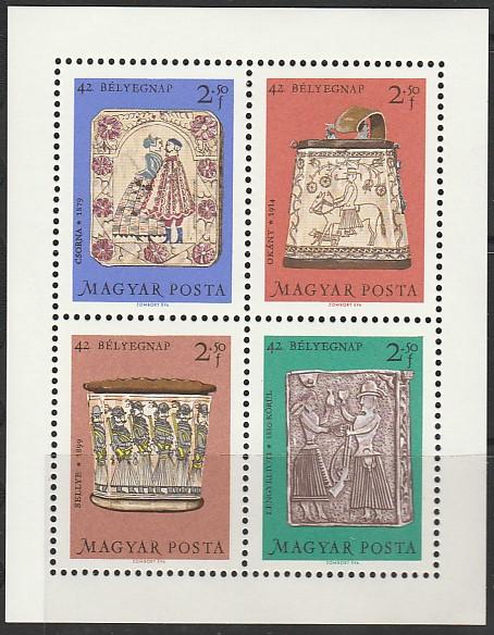 Венгрия 1969 год. День почтовой марки. Предметы народного творчества, блок (с наклейкой)