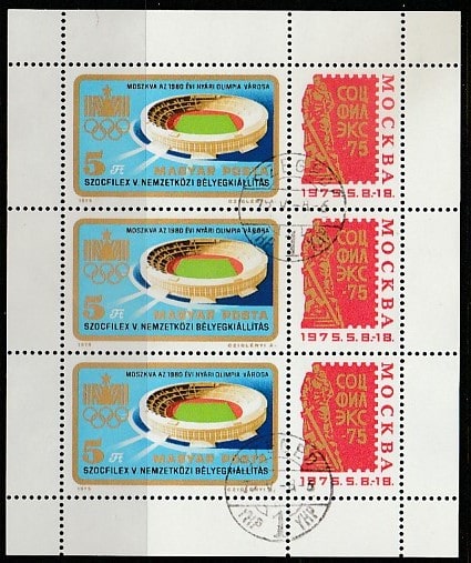 Венгрия 1975 год. Международная филвыставка "SOZFILEX-75" в Москве, малый лист (гашёный)