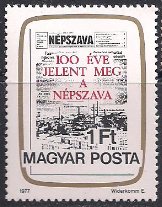 Венгрия 1977 год. 100 лет газете "Профсоюзы Непсава". 1 марка