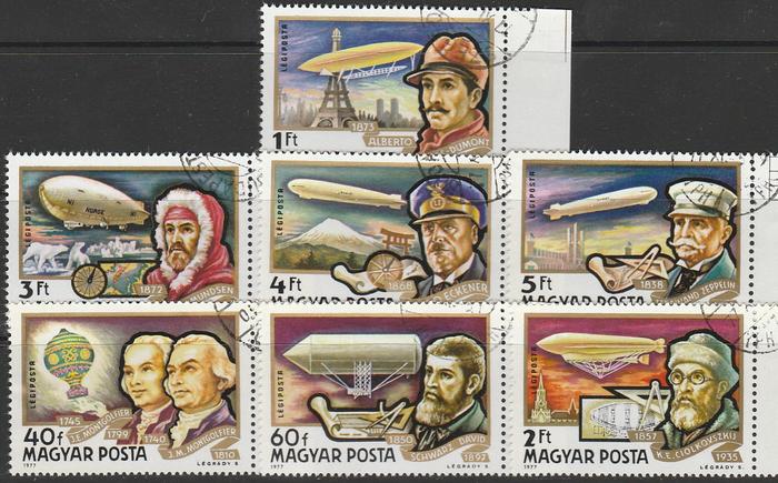 Венгрия 1977 год. История воздушных судов. 7 гашёных марок