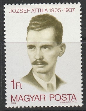 Венгрия 1980 г. 75 лет со дня рождения поэта Атиллы Йожефа, 1 марка (наклейка)