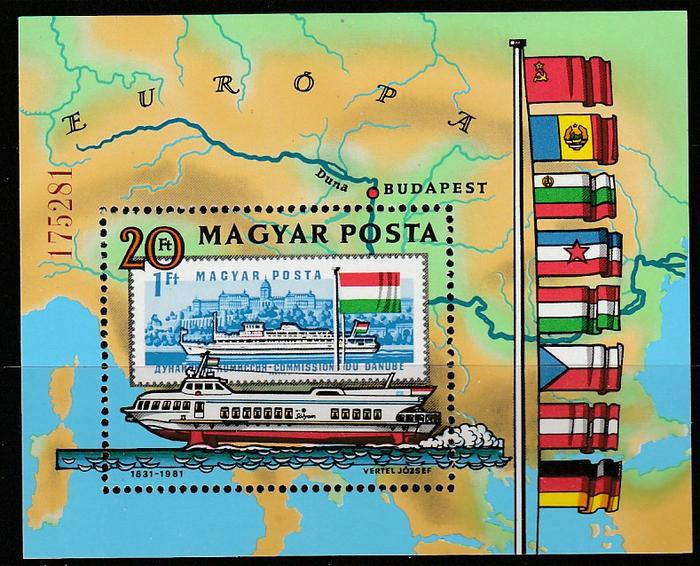 Венгрия 1981 г. 125 лет Дунайской Комиссии. Блок