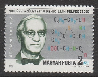 Венгрия 1981 год. 100 лет со дня рождения микробиолога Александра Флеминга, 1 марка (наклейка)