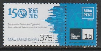 Венгрия 2015 год. 150 лет Международному союзу электросвязи, 1 марка с купоном.