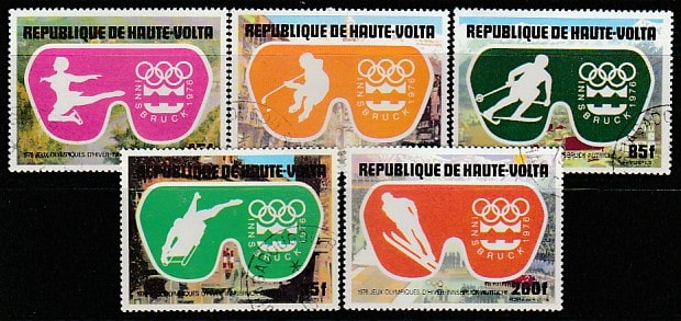 Верхняя Вольта 1975 год. Зимние Олимпийские игры в Инсбруке, 5 марок (гашёные)