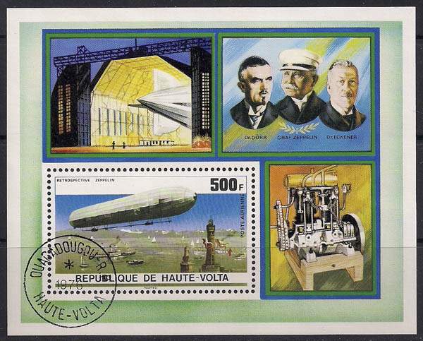 Верхняя Вольта 1976 год. 75 лет летательным средствам Ф. Цеппелина. 1 гашёный блок