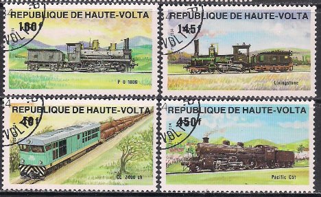 Верхняя Вольта 1984 год. Локомотивы. 4 гашеные марки