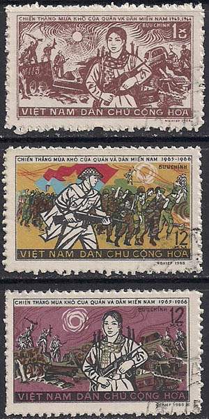 Вьетнам 1966 год. Победа национально-освободительного фронта. 3 гашеные марки