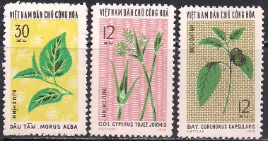 Вьетнам 1974 год. Растения, важные для текстильного производства. 3 марки