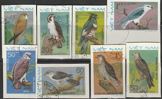 Вьетнам 1982 год. Хищные птицы. 8 гашёных беззубцовых марок