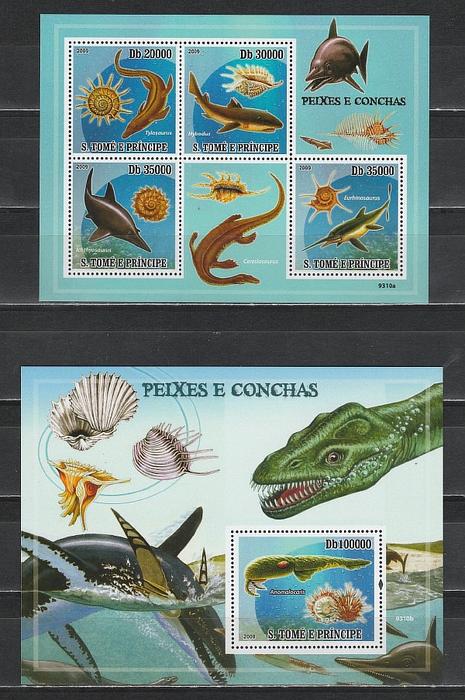 Вымершая Морская Фауна, Сан Томе и Принсипи 2009, малый лист + блок