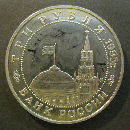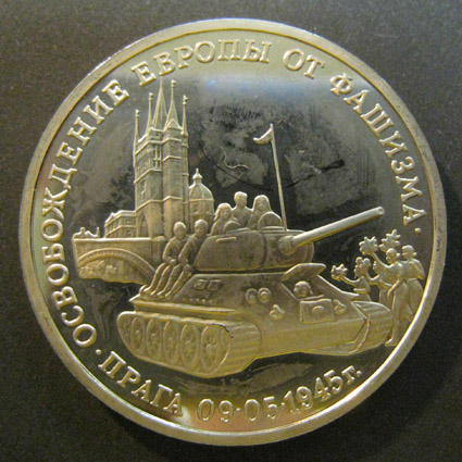 Юбилейная монета 3 рубля. 50 лет освобождения Праги. 1995 г. Proof