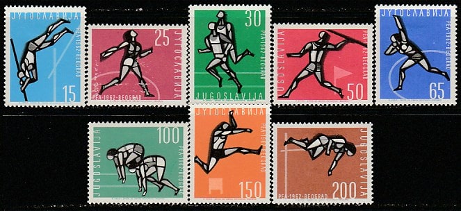 Югославия 1962 год. VII Чемпионат Европы по лёгкой атлетике в Белграде, 8 марок (наклейка)