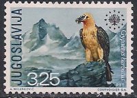 Югославия 1970 год. Бородатый гриф (ном. 3.25). 1 марка из серии (наклейка)