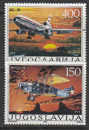 Югославия 1987 год. 60 лет гражданской авиации в Югославии, 2 марки (406.2213)