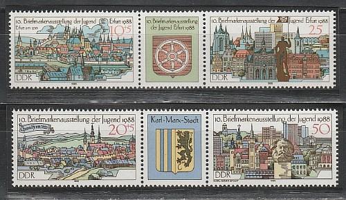 Юношеская Филвыставка, ГДР 1988 год, 4 марки. 2 сцепки