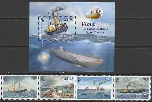 Южная Георгия 2015 год. Последний из британских паровых траулеров, 4 марки + блок (408.702)