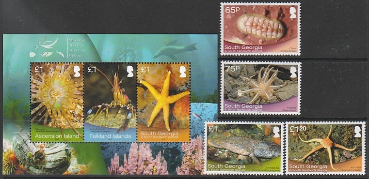 Южная Георгия и Южные Сандвичевы острова 2013 год. Морская фауна, 4 марки + блок (н