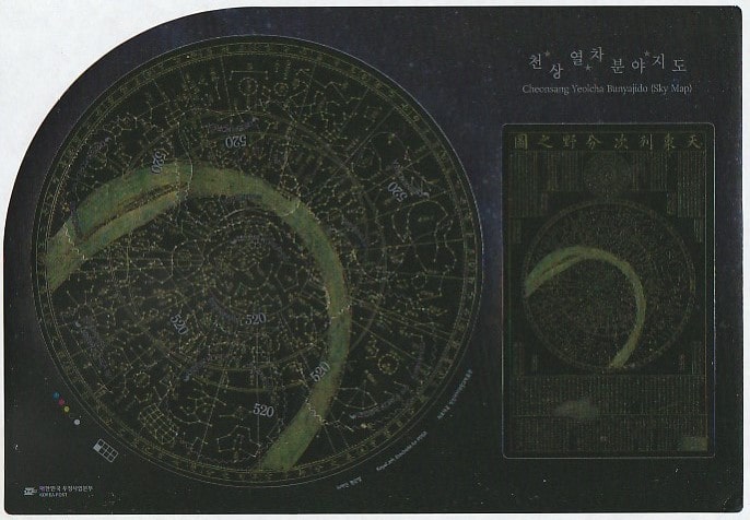 Южная Корея 2022 год. Корейская звёздная карта ф XIV века, малый лист (самоклейка)