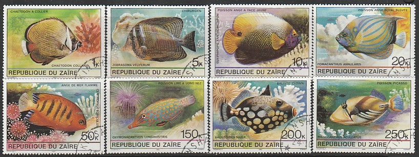 Заир 1980 год. Тропические рыбы, 8 марок (гашёные)